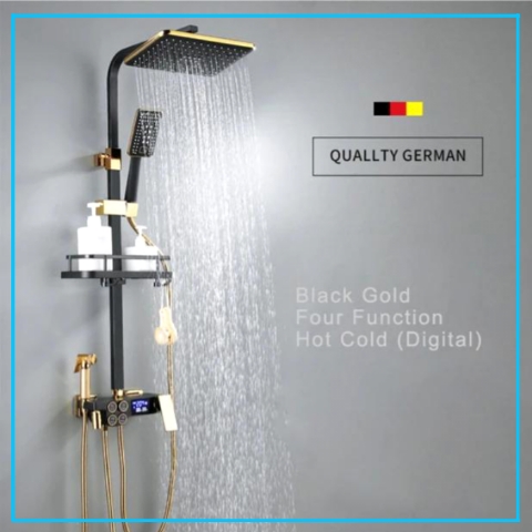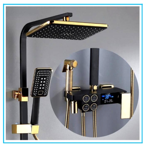 Robinet Système de douche de salle de bain Robinet de douche en or noir Pomme de douche carrée Système de douche de bain